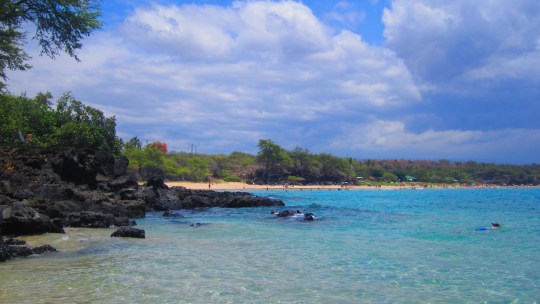We spotted a little cove over to the right of the park that was calm waters for snorkeling. Three sea turtles came up to ankle-deep water and swam with us. I couldn’t believe our luck!