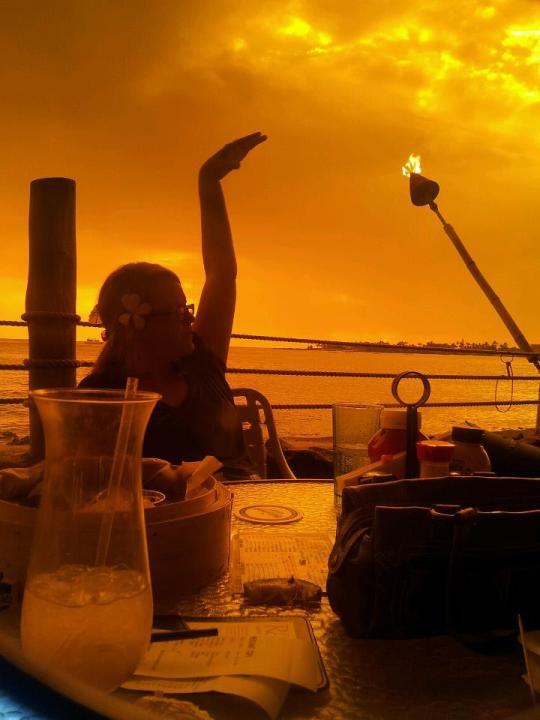 We met up at Huggo’s on the beach front for an amazing, almost dream-like happy hour. With my toes in the sand and several half-price Mai Tais and Hawaiian Rainbows, I sat and listened to the live music, ate nachos and enjoyed the setting sun from my front row seat.
