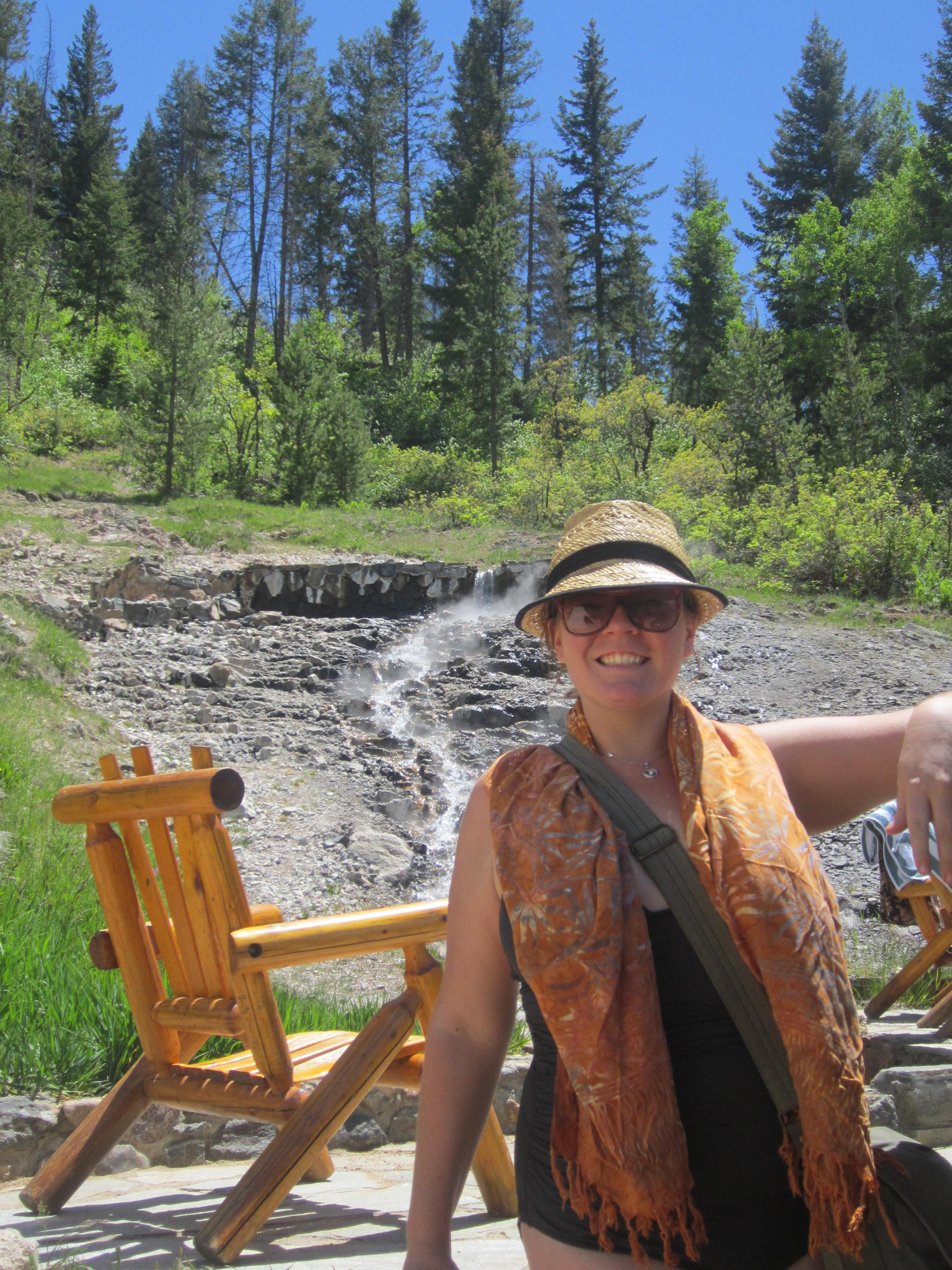 I’ve never been in a hot spring with steam actually emitting from the falls in summer. These springs were hot tub hot, about 104 degrees. Though it is summer, the springs felt amazing and soothed my achy, weary travelling bones.