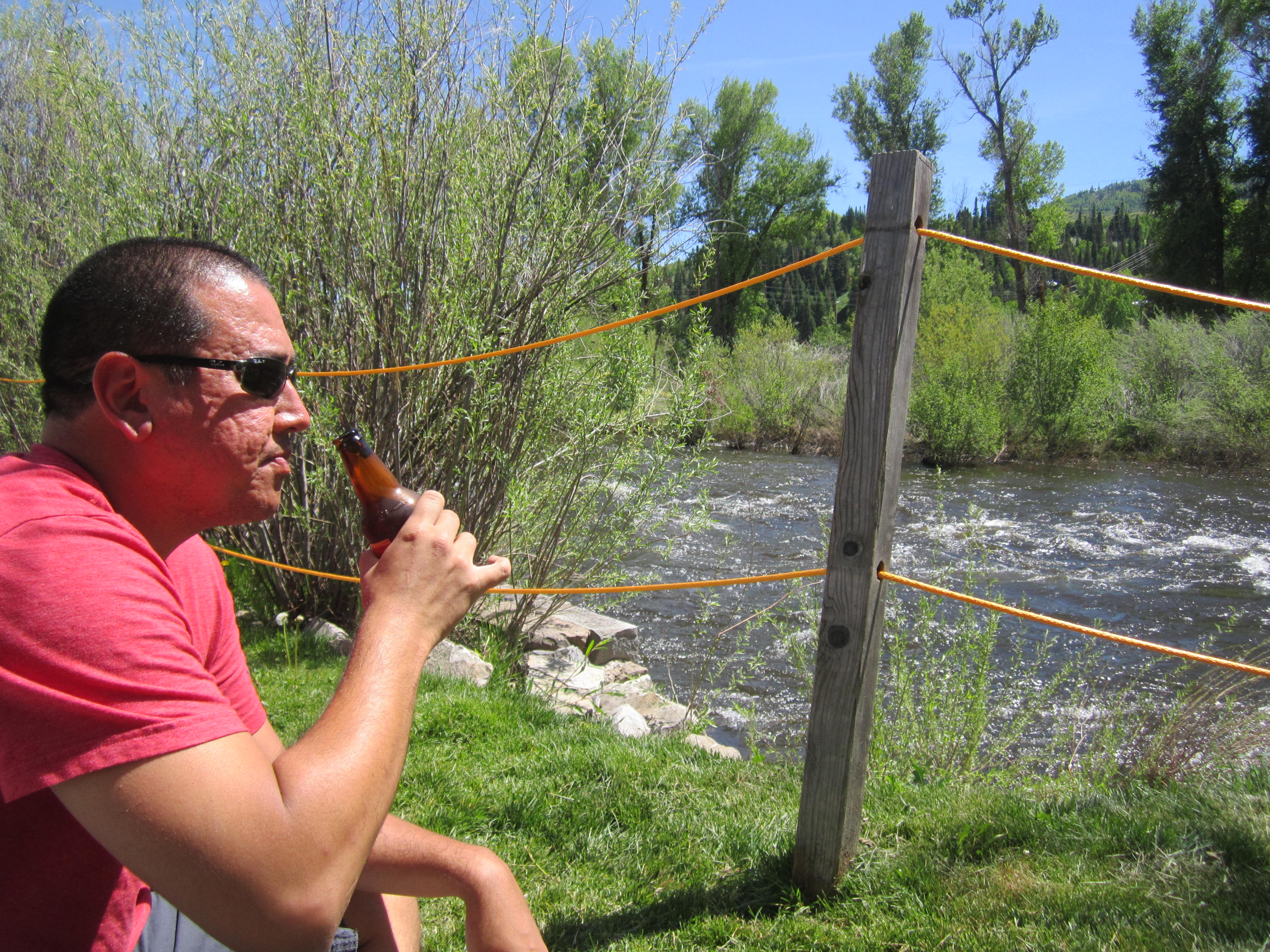 From the springs, Jon and I cruised into town on a mission to find a cheap lunch for under $20. Somehow, Jon has a knack for finding just such deals and we wandered into Sunpie’s Bistro and had an absolute blast. To our luck, it was happy hour. So there we sat, in the sun, rested next to the Yampa river, sipping our microbrews and taking in the view.