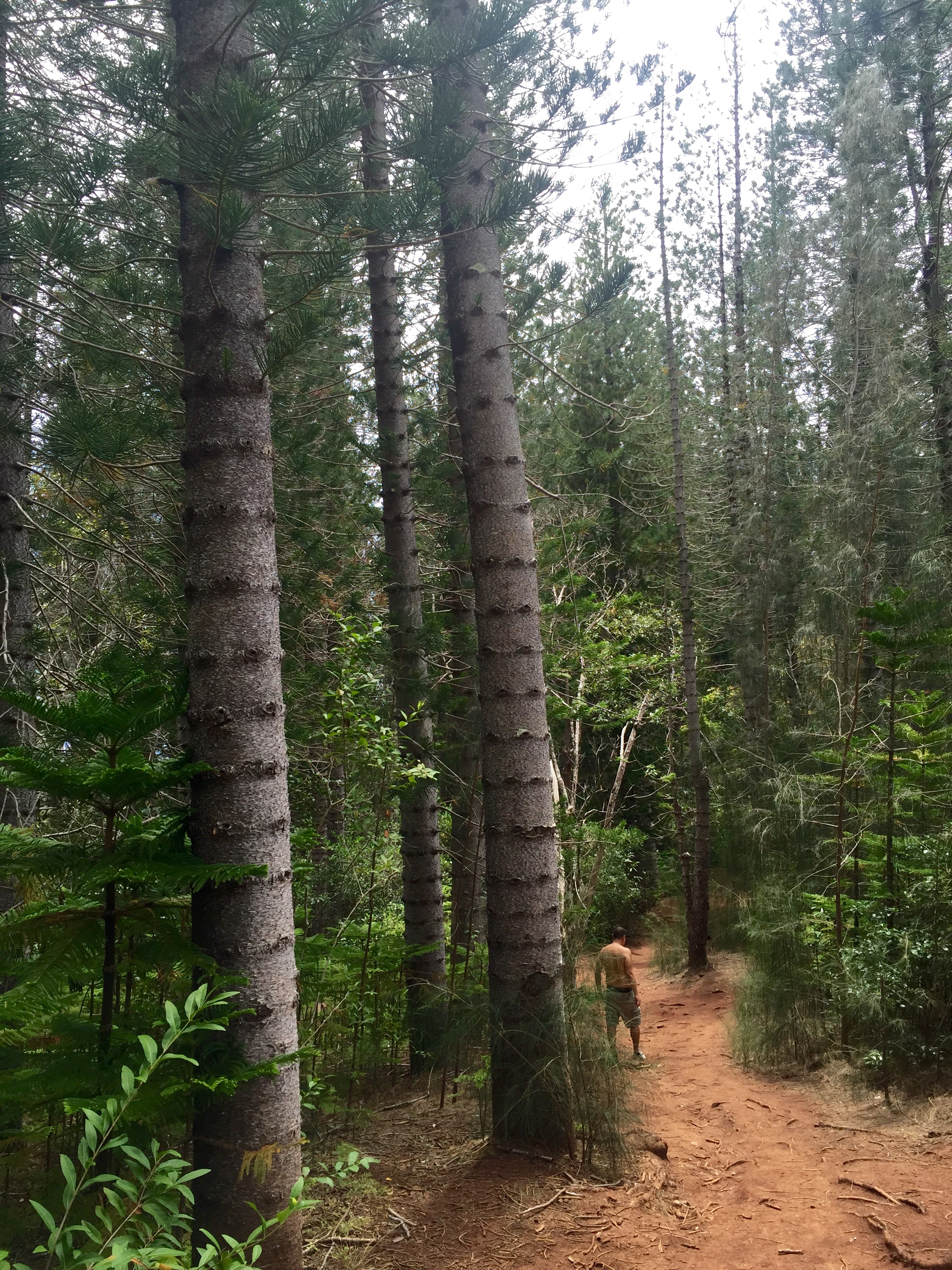 The landscapes of Hawaii always surprise me. One minute you’re sweating as if in a desert, the next you’re in a breezy pine forest. This is where your hike begins.